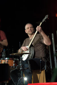Wie andere berühmte Landsleute von ihm, ist Mathieu als Kind in den Zaubertrank gefallen. Den Musikzaubertrank. Bereits früh beschäftigte er sich mit Harmonielehre und Musiktheorie. Er erlernte Gitarre und begann zu komponieren. In seiner äußerst musikalischen Familie fielen diese Veranlagungen auf fruchtbaren Boden. Als Vater von Zwillingen tut er nun einige Jahre später selbst sein Möglichstes, um auch den eigenen Nachwuchs entsprechend zu fördern. Damit er die eigenen Söhne im Blasorchester begleiten kann, begann er Schlagzeugunterricht zu nehmen. Offenbar sehr erfolgreich, denn seither spielt er auch noch in diversen anderen Bands und Orchestern. Glücklicherweise hat Mathieu dennoch genug Zeit gefunden, um im Nebenbei noch das Banjospielen zu lernen. Bekannt ist er auch als “Der Mann ohne Schlaf” – stets der Letzte an der Bar und der Erste beim Frühstücksbuffet! Niemand weiß, wann oder ob dieser Mensch eigentlich jemals schläft. Auch was er beruflich genau macht, ist unbekannt, aber es scheint sehr entspannend zu sein, sonst könnte er kaum so viel Energie für Musik überhaben. Angeblich ist er Ingenieur in der Automobilindustrie. Festzuhalten bleibt, dass er stets genug Zeit für die Band mitbringt. Mal eben einen Konzertmitschnitt als Video zu schneiden oder eine Studiosession zu leiten sind Dinge, für die er genauso Zeit hat, wie für das Komponieren von Melodielinien für Instrumente, die er selbst gar nicht spielt. Der offenkundig überschäumende Aktionismus könnte eventuell dadurch zu erklären sein, dass Mathieu als Franzose offenbar die Revolution tief im eigenen Genmaterial verankert hat.