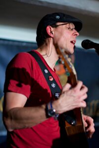 “Aus der Not eine Tugend machen”, das könnte man getrost als Miguels Leitsatz bezeichnen. Als WG-Mitbewohner des WG-Wohnzimmerproberaumes war er es jahrelang gewöhnt, dass das Wohnzimmer regelmäßig zum Proberaum bzw. zur Bar mutierte. Im Grunde stand er also irgendwann vor der Wahl zu fliehen oder sich dem Projekt anzuschließen. Dankenswerterweise entschied er sich für die zweite der beiden Optionen. Von seiner Grundhaltung her ist Miguel ruhig, bescheiden und durchaus sehr kritisch. Wäre er ein Industrieprodukt, so würde man ihm vermutlich schnell das Prädikat “German Over-Engineering” bescheinigen. Seine Vorliebe für Exaktheit und Präzision spiegeln sich auch in Instrumentenwahl (klassische Gitarre und Cello). Dieses Mindset könnte auch partiell eine Erklärung dafür liefern, dass er vor vielen Jahren von Costa Rica nach Deutschland ausgewandert ist. Dass er sich dann allerdings ausgerechnet der Folk Distillery, mit ihrer eher typisch südamerikanischen “Geht scho, bassd scho”-Arbeitsweise, angeschlossen hat, darf als Ironie des Schicksals gewertet werden.